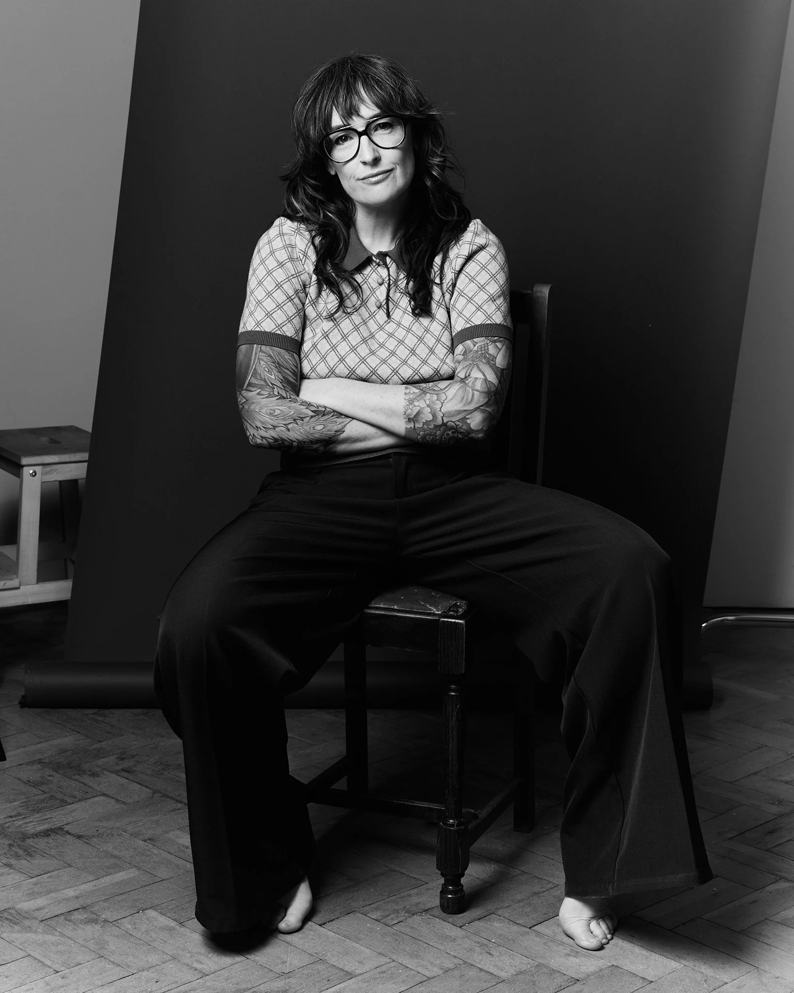 The studio setup stayed simple. Clean background. Controlled light. No dramatic reinventions. When someone spends a lot of time on television, there’s already a public-facing version of them floating around. I’m not especially interested in competing with that. I’d rather make space for the in-between moments. The bits that don’t feel like they’re trying to prove anything.