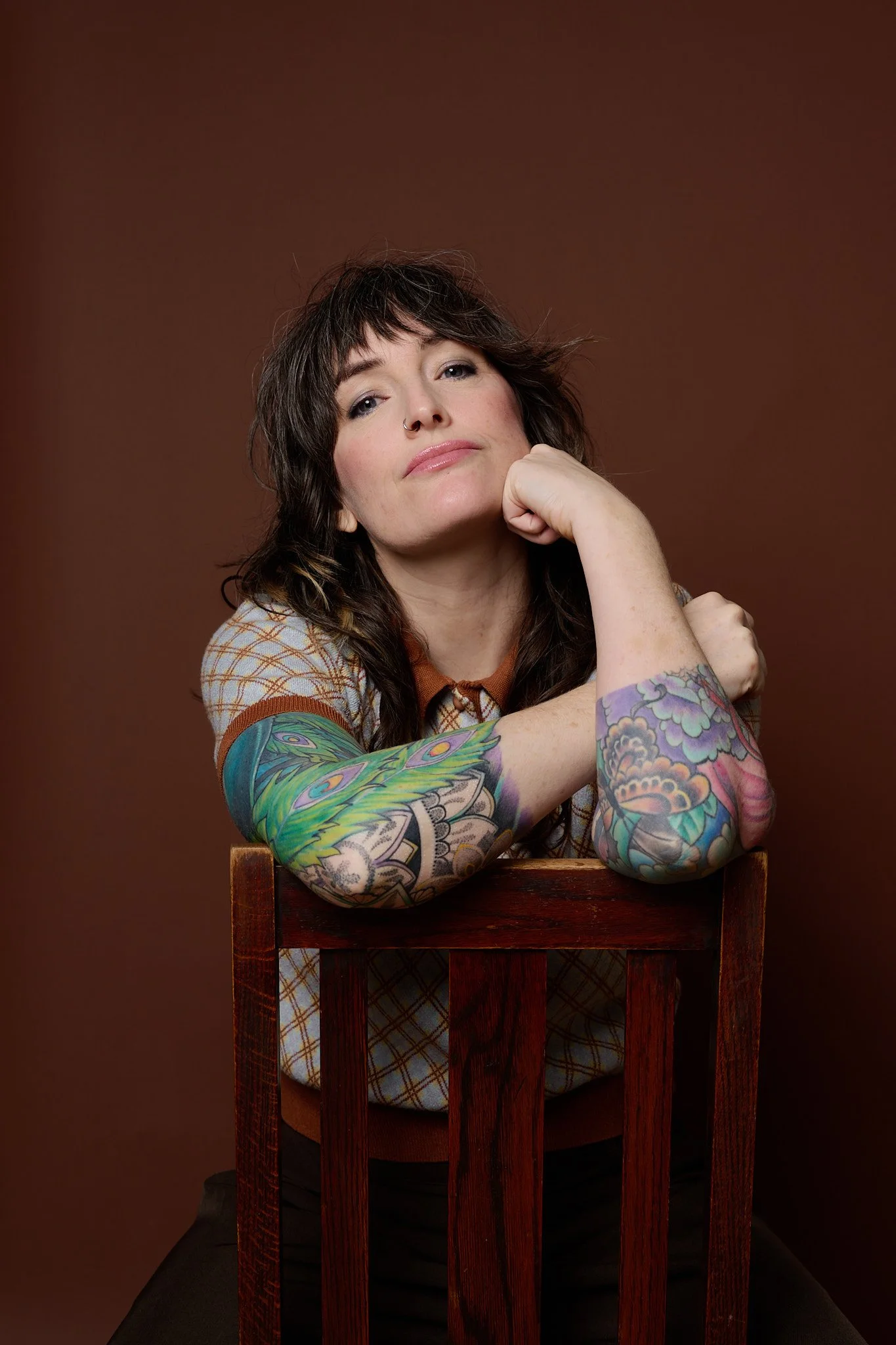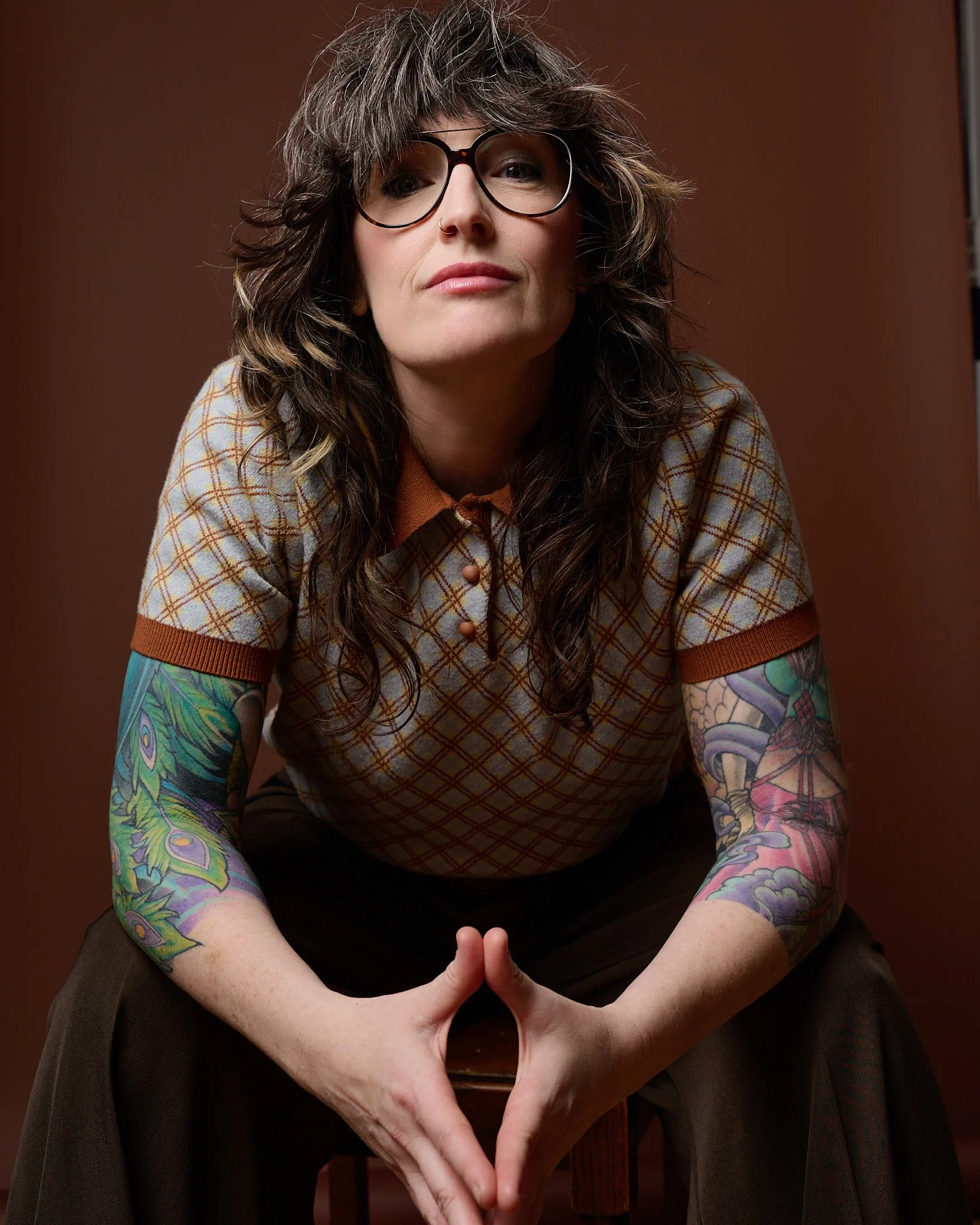 I photographed Angela Heenan in my Manchester studio, and from the first few minutes it felt less like a “session” and more like catching up with an old friend who just happened to be standing in front of a backdrop. That changes everything. There’s an ease that can’t really be manufactured, and thankfully doesn’t need to be.